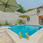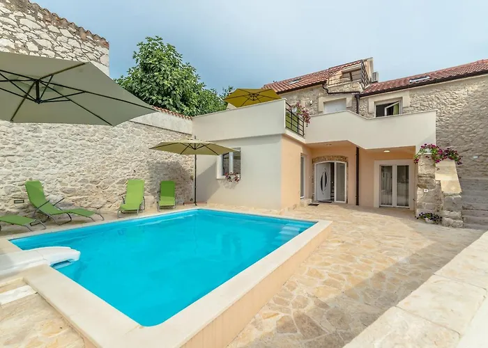 Rustic Villa se encuentra a 3 km del Punta Bajlo Beach y ofrece una piscina con una sauna para que los huéspedes se relajen y desconecten. Con una terraza, la villa está situada a una distancia de 4 km de la Basílica de San Crisógono.